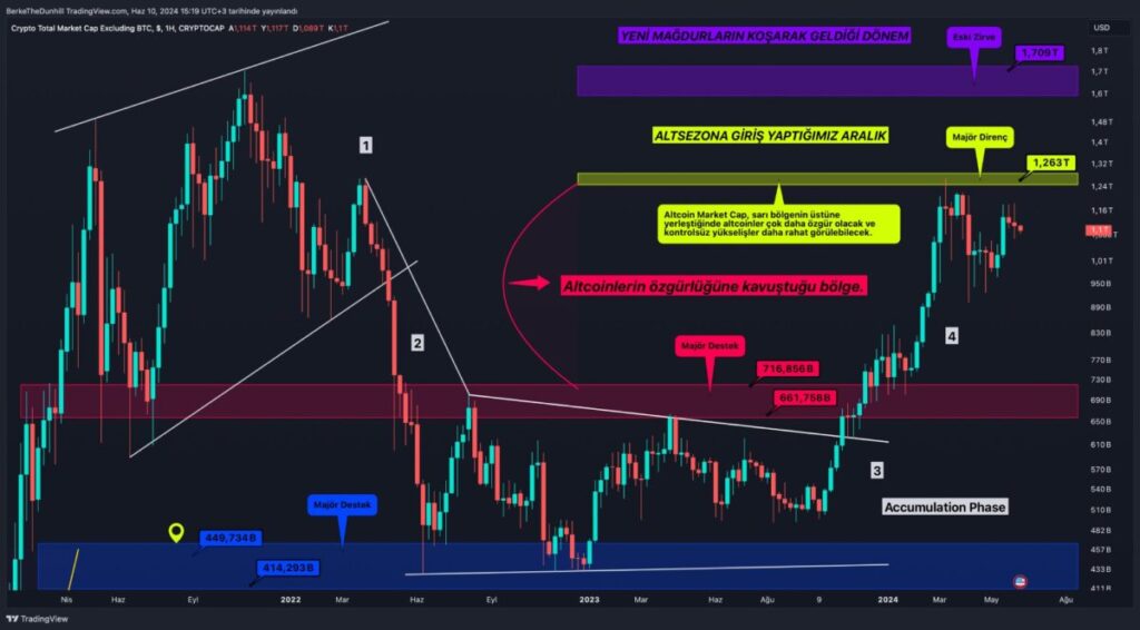 When the Altcoin Market Cap settles above the yellow zone, altcoins will be much freer and uncontrolled rises will be more easily seen. That’s why this critical zone plays a key role.