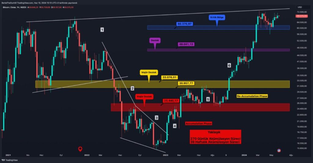 When analyzed on a weekly timeframe, Bitcoin continues to move above the blue zone.