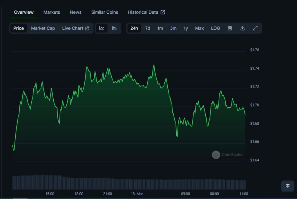 While the price fell back by 15% over the weekend, it is trading at $1.69 at the time of writing.