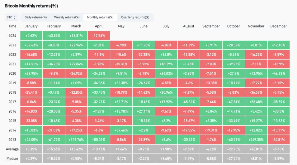 On the other hand, Bitcoin has not closed any month with a negative rate since August.