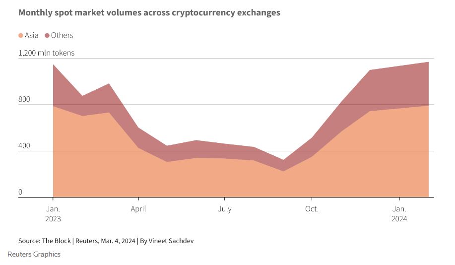 Bitcoin’s sharp rally, according to many, is behind the American investors who bought US spot ETFs, while Reuters, reporting the data it received through The Block, stated that Asian investors were behind the rises, especially in February.