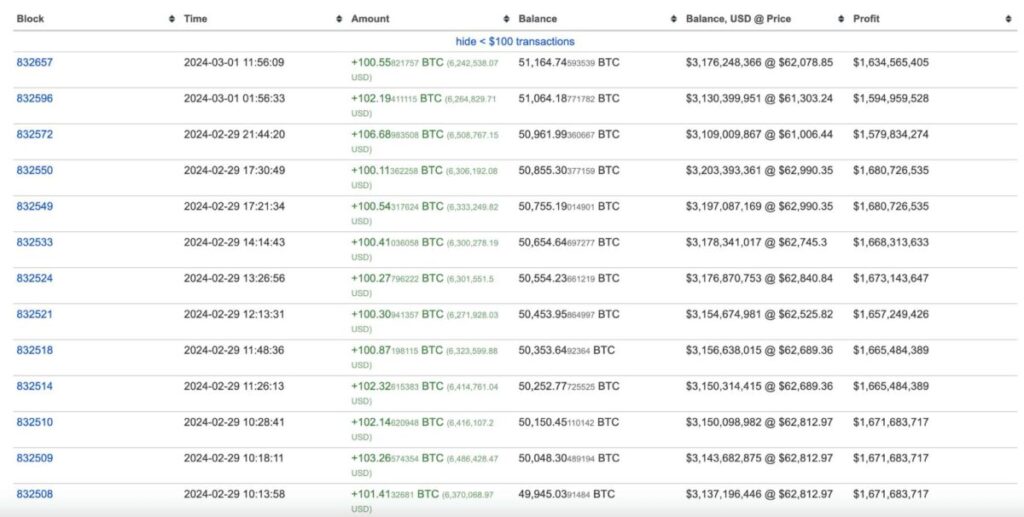 The wallet made its last purchase on Friday, March 1. On that day, 202.74 BTC was added to the address. Before Friday, there was a heavy purchase on Thursday. On February 29, more than 1413 Bitcoins were added to the wallet.