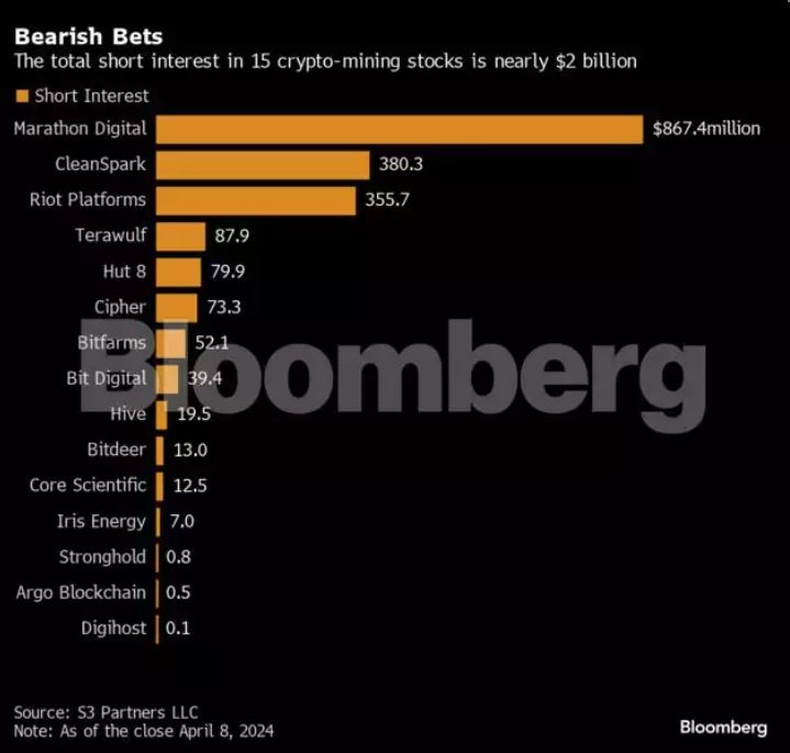 The value of short positions in mining stocks, which have already been lagging for some time, is around $2 billion. According to Ihor Dusaniwsky, director of investment analysis firm S3 Partners, this $2 billion short position value corresponds to 15% of the total market capitalization of the companies. A giant short position of $867 million in Marathon Digital is also not going unnoticed.