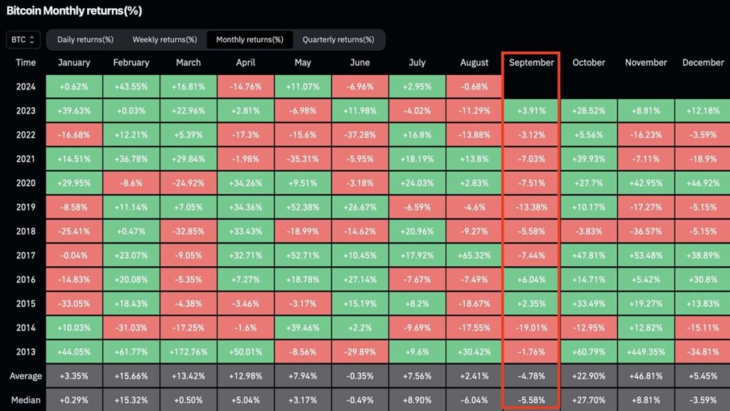 Bitcoin showed a performance that generally closed September with a decline compared to the end of the previous month. In the 11 years since 2013, the largest cryptocurrency, which closed the end of the month in the green only 3 times, has seen a decline 8 times. The largest of these declines was in 2014, when a 19% depreciation was seen. The average of September was a 4.78% decline.