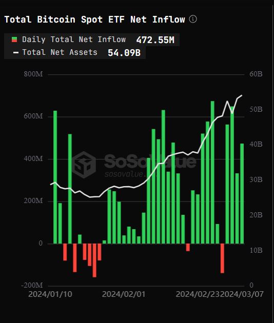 Bitcoin spot ETFs in the US closed yesterday with a net investment of $472 million. Fidelity, the leader of the day, received $473 million in investment. For BlackRock, this figure was $244 million. ARK Invest and Bitwise saw net inflows of $42 million and $41 million, in total.