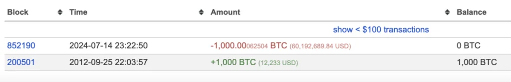 As we approach the first hours of the new week, a wallet containing 1000 BTC worth $60 million and whose address starts with 1EhXA... was activated after 11 years and 8 months. In the transaction that took place at 11.22 p.m, 1000 BTC was divided into two separate wallets. 1.27 BTC was transferred to one wallet and 998.73 BTC to the other.