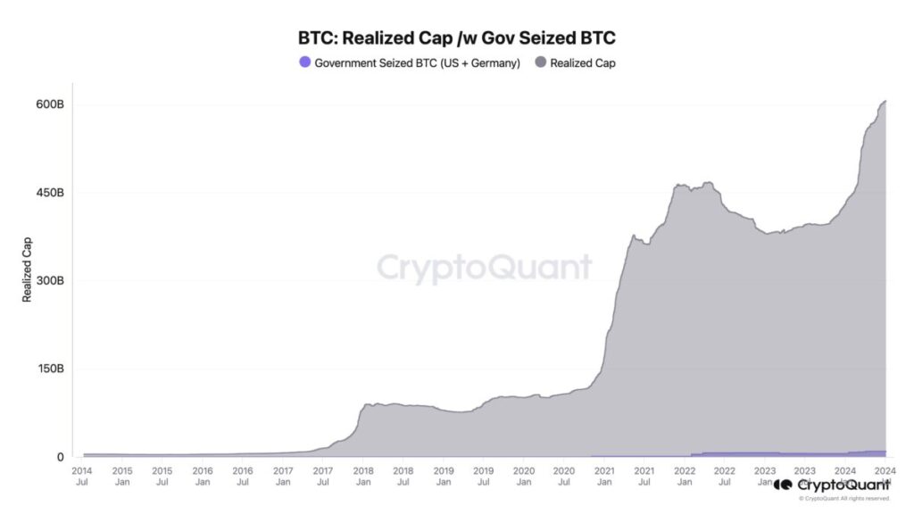 According to blockchain analytics company CryptoQuant, Bitcoin sales by governments such as the US and Germany are overstated relative to the capital entering the market.