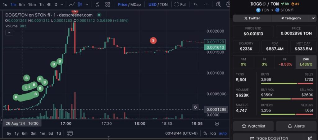 DOGS, the latest meme coin to take Telegram and even the general cryptocurrency world by storm, was listed by many major exchanges yesterday, while a trader made a 420% profit in a 2-hour period.
