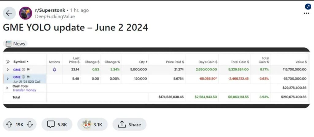 In 2021, Gill, whose purchases of GME shares in 2021 caused large companies to be caught in the wrong corner and suffer huge losses, disclosed $ 116 million worth of GameStop shares and a $ 65 million call option in his post on Reddit. The strike price on the call option, which will expire on June 21, was $ 20.