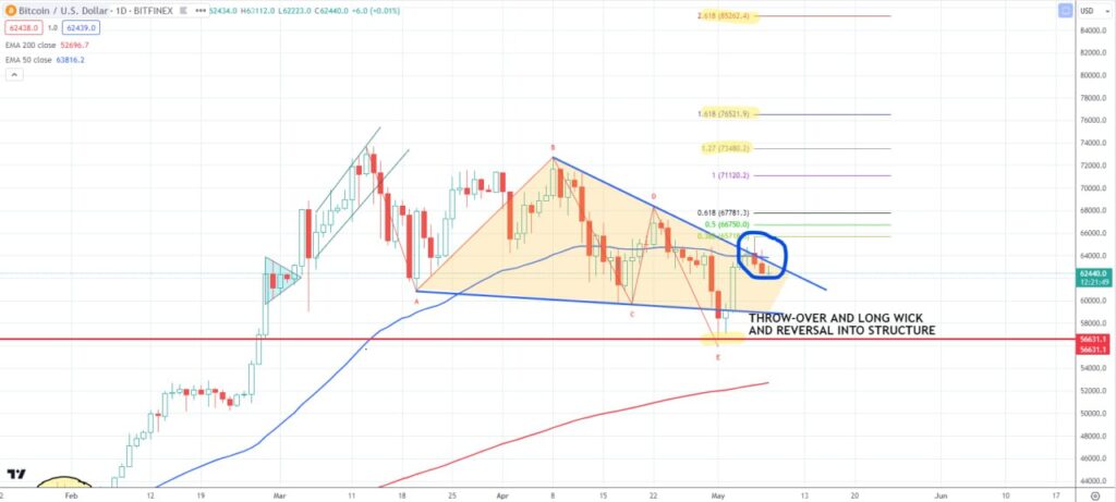 “BTC [is] currently in process of breaking [the] trendline of Pennant and the 50 Daily SMA (simple moving average). When the level [of] $65,000-$66,000 is broken, BTC will move on to first $73,500, then $76,500, and chances are that we see $85,200 before the Summer.”