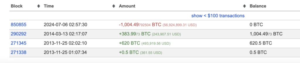 1004 BTC came out today from a wallet that had not seen any activity for more than 10 years. The transaction was made at 2:57 am. Almost all of the assets, worth about $57 million, continue to be held in a different wallet to which they were transferred.