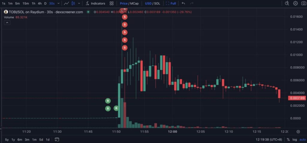 An investor trading on the Solana network started with just 9 SOL tokens (about 1470 dollars) and made a small fortune in 5 minutes. This person bought 28.5 million TOBI tokens with 9 SOLs. After the TOBI price rose sharply, the investor sold all the tokens in 5 minutes and increased his 9 SOL tokens to 1238.
