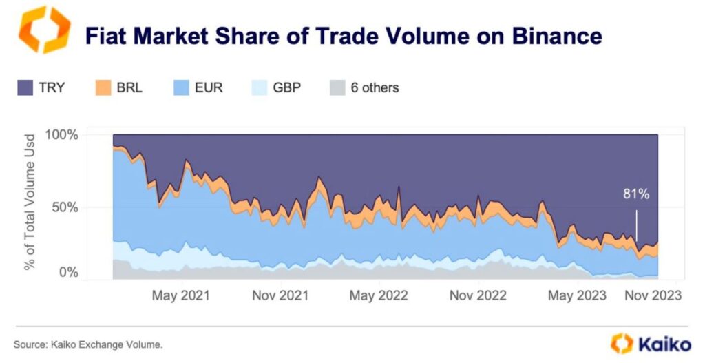According to the latest data from crypto research company Kaiko; In August, the market share of the Turkish lira in fiat currencies on the Binance exchange reached 81 percent. While this rate was the peak for the TL, it was only 9 percent in early 2021.